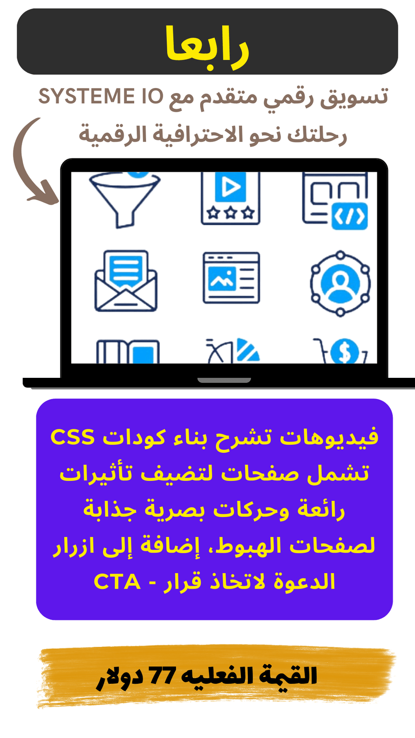 مجموعه كبيره من القوالب جاهزه للتعديل عليها لتساعدك في بناء صفحات الفانل , او تصميم الاعلانات او النشر على السوشيال ميديا , سيتم تجديد القوالب شهريا في منطقة الاعضاء مع تأكيد ان يكون اشتراكك فعال في systeme io